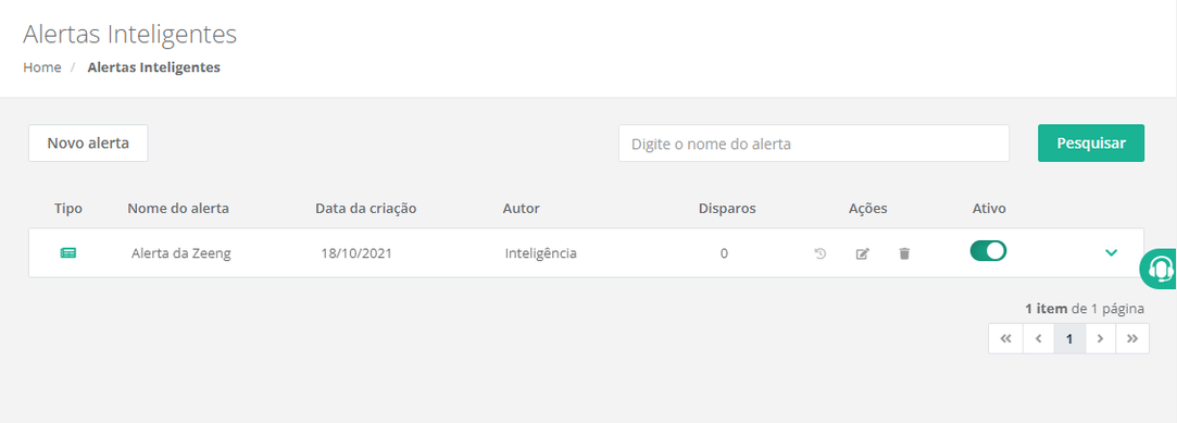 Depois do alerta ser criado, você será redirecionado para uma tela que listará todos os alertas configurados.