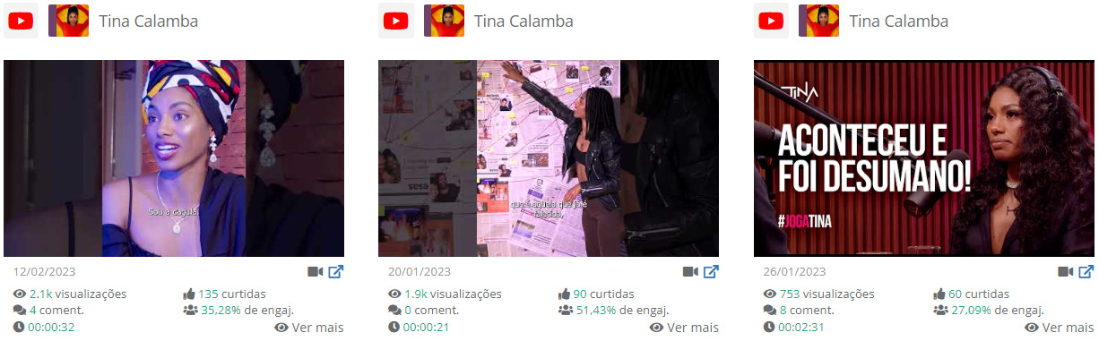 Por fim, a pipoca que produziu os vídeos com maior número de interações foi Tina Calambra.
