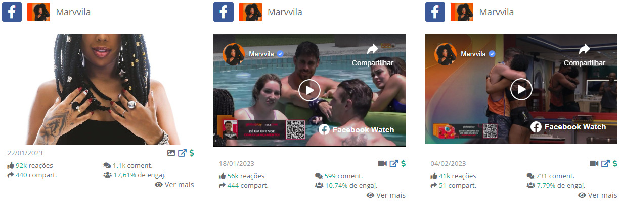 Dentre os três posts com o maior número de interações no Facebook, Marvvila predomina em todos.
