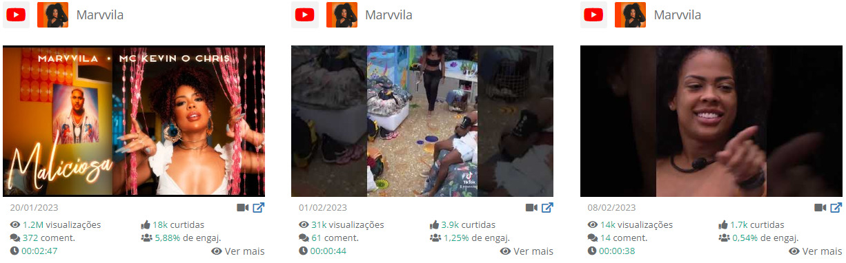 Por fim, a camarote que realizou os vídeos com maior número de interações foi Marvvila.