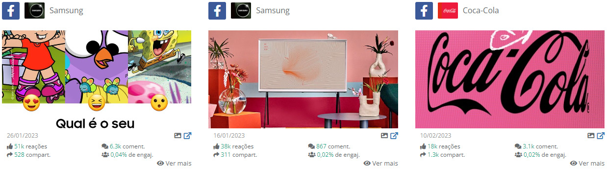 As postagens com o maior volume de interações no Facebook foram da Samsung e Coca-Cola.