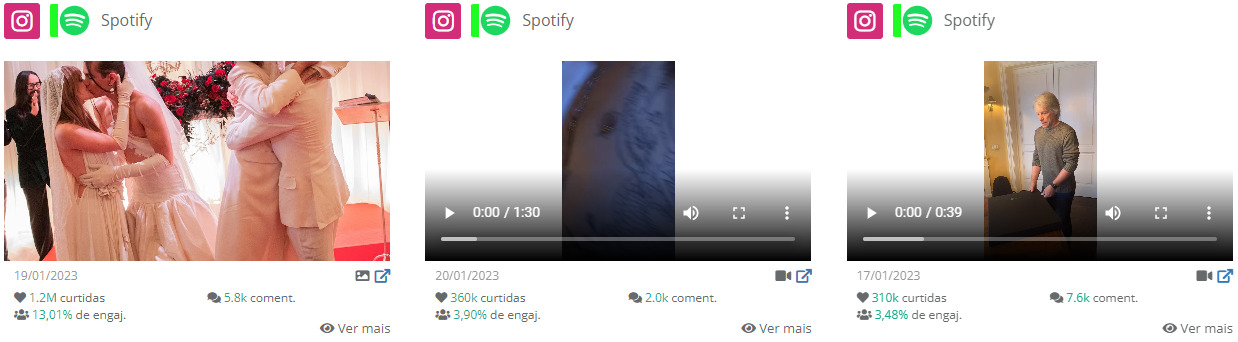 No Instagram, o Spotify garantiu as postagens com o melhor engajamento.