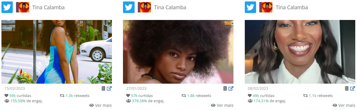 No Twitter, Tina Calambra obteve as postagens com o maior número de interações. Entretanto, todas foram realizadas após sua eliminação do programa.