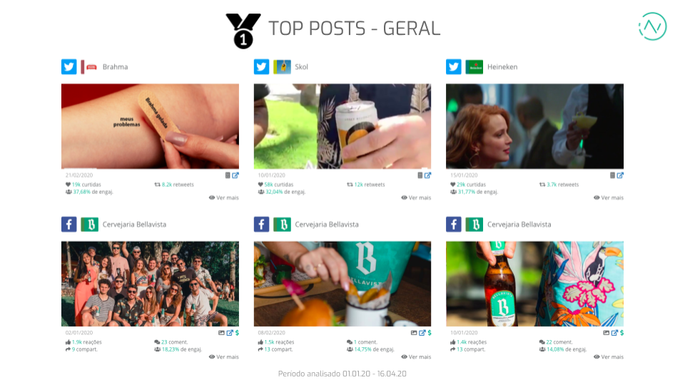 Os posts em destaque foram para as marcas Brahma, Skol, Heineken e Bellavista.