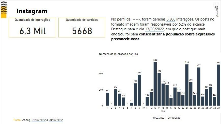 Um dos dashboards mais utilizados pela EBMQuintto é o Monitoramento de dados orgânicos do Instagram e do Facebook.