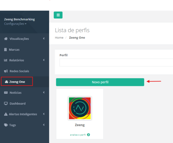 Clique no menu Zeeng One e depois em Novo perfil