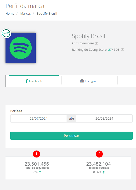 Ao acessar o perfil de uma marca e ir até a rede social Facebook, você irá visualizar inúmeras métricas, porém, iremos falar sobre as duas primeiras.