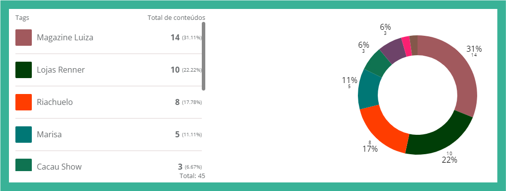 Antes de mais nada, é importante ter uma visão geral de como está a performance das marcas nas redes sociais. Portanto, é imprescindível observar tanto o volume de seguidores quanto o volume de postagens, para assim chegar a conclusão de que tipo de conteúdo está performando melhor.