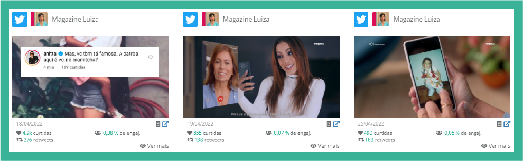 Igualmente, quem é líder e domina o Top Posts por interações no Twitter, é o Magazine Luiza.