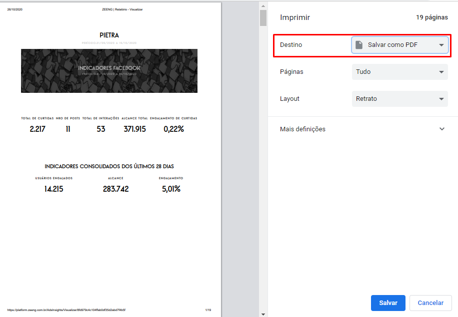 Para baixar, você deve clicar em “Ctrl + P” ou “comando + P” e selecionar o destino “salvar como PDF”.