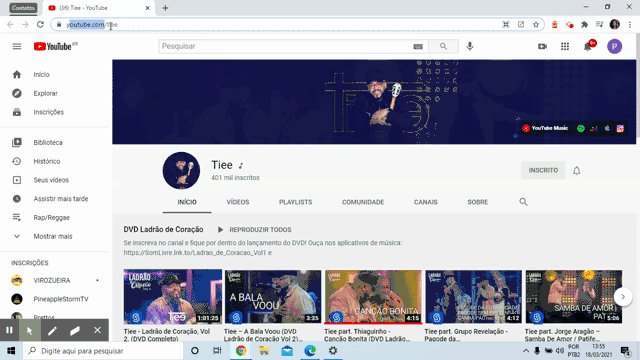 Quando você retorna para a tela inicial do canal, a URL já estará adequada ao formato necessário para inserir no campo de pré-cadastro.