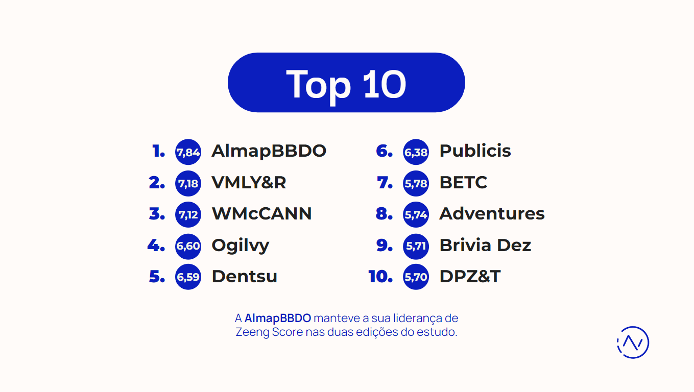 Conforme o esperado, o Top 10 apresenta algumas mudanças em relação a edição anterior do Estudo das Agências. Contudo, a AlmapBBDO se mantém na liderança do ranking.
