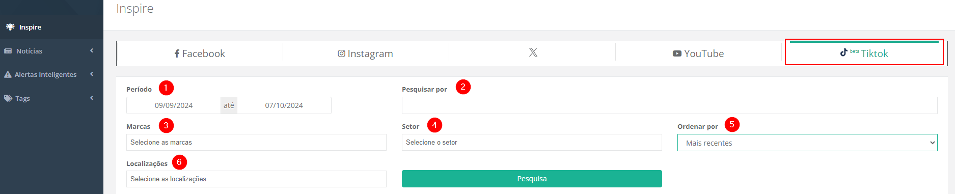 Essa integração com o TikTok no Inspire, proporciona uma visão mais ampla e estratégica do comportamento digital, facilitando o acompanhamento do desempenho das suas marcas e permitindo a identificação de oportunidades de crescimento e tendências emergentes. Agora, você poderá monitorar não apenas métricas de engajamento, mas também identificar padrões de consumo, campanhas virais e novos influenciadores em ascensão. Com esses insights valiosos, será possível otimizar suas estratégias de marketing com ainda mais precisão, garantindo que sua marca esteja alinhada às tendências digitais mais atuais.