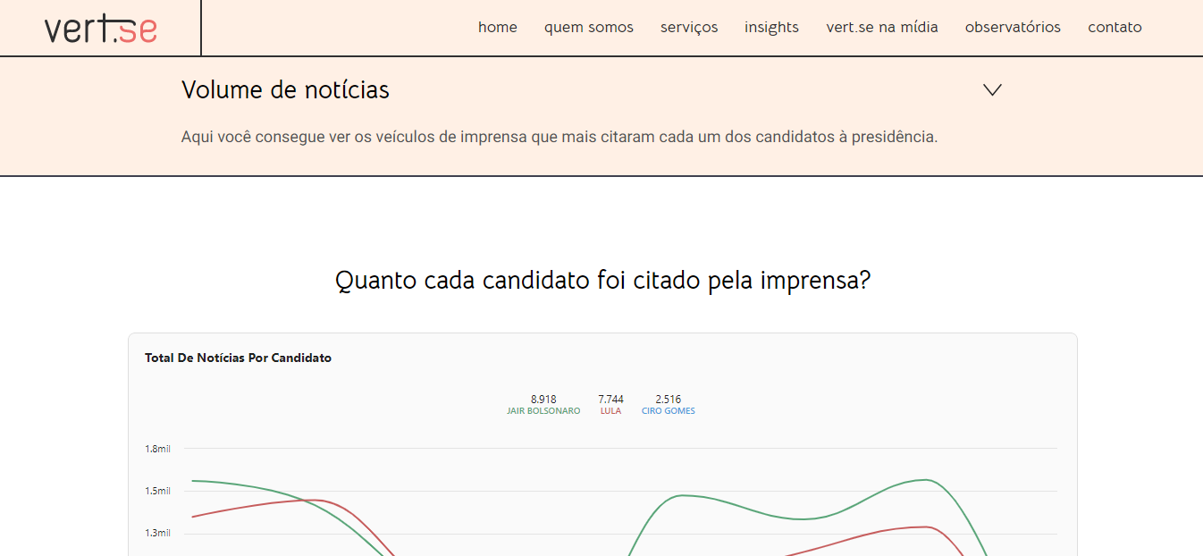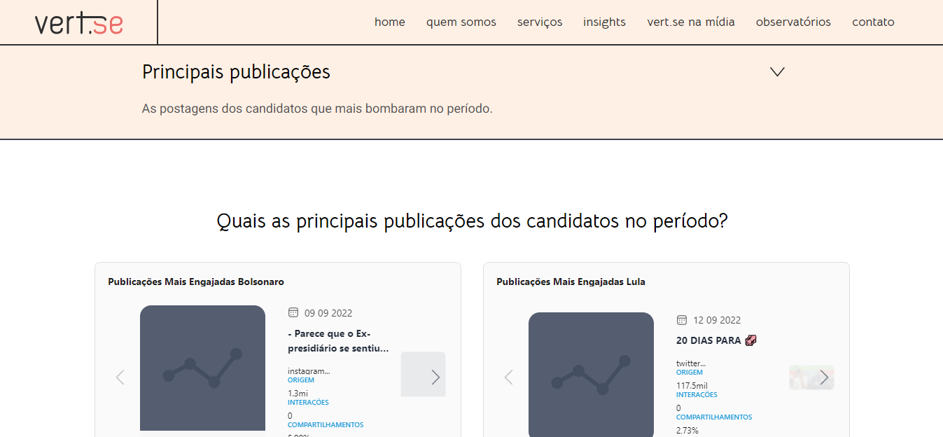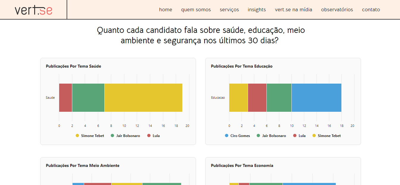 Primeiramente, são os relatórios semanais produzidos pela equipe da Vert.se com as informações mais relevantes dos eventos ocorridos na campanha dos candidatos. Além disso, é a porta de entrada para o dashboard.